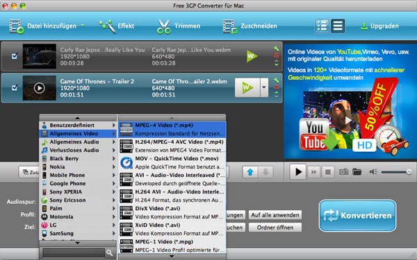 3GP/3G2 Videos in populäre Video- und Audioformate unter masOS kostenlos umwandeln